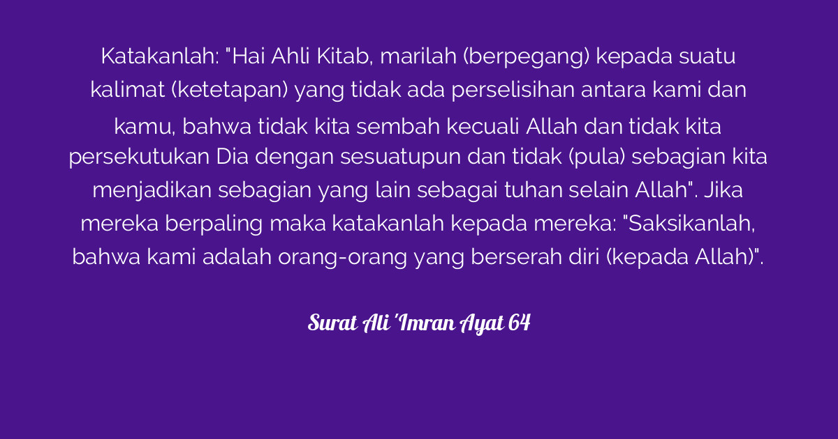 Amalan agar istri cepat hamil, utang lunas, dan menjadi kaya; Dan laksanakanlah salat, tunaikanlah zakat, dan rukuklah beserta orang yang rukuk. وَاَقِيْمُوا الصَّلٰوةَ وَاٰتُوا الزَّكٰوةَ وَارْكَعُوْا مَعَ الرَّاكِعِيْنَ. Misalnya, surat ali 'imran 3 ayat 19 yang berbicara …
